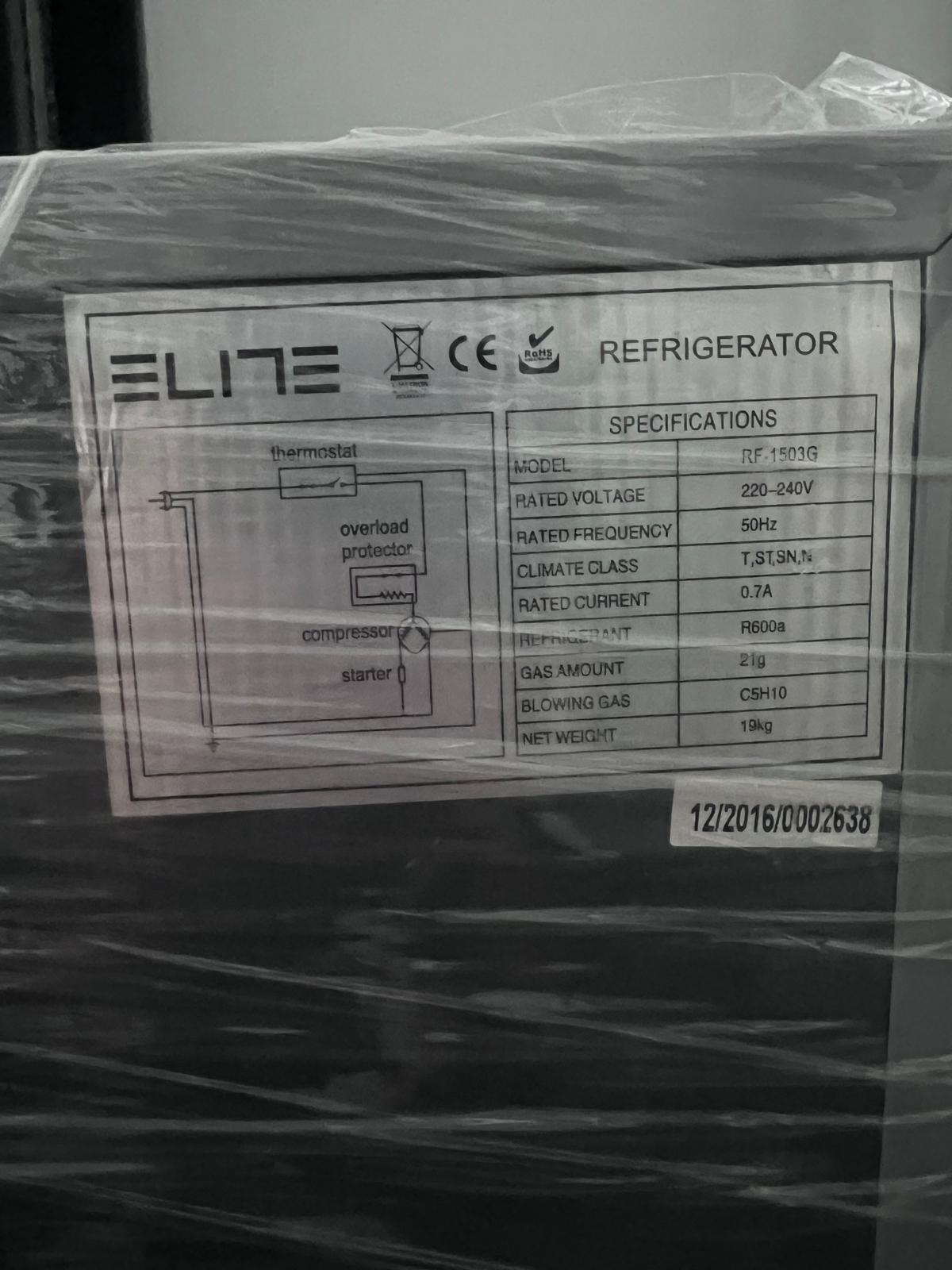 Компактен хладилник Elite, подходящ за офис, кухня, стая за почивка или малко помещение. Практично решение за съхранение на напитки и хранителни продукти при ограничено пространство.