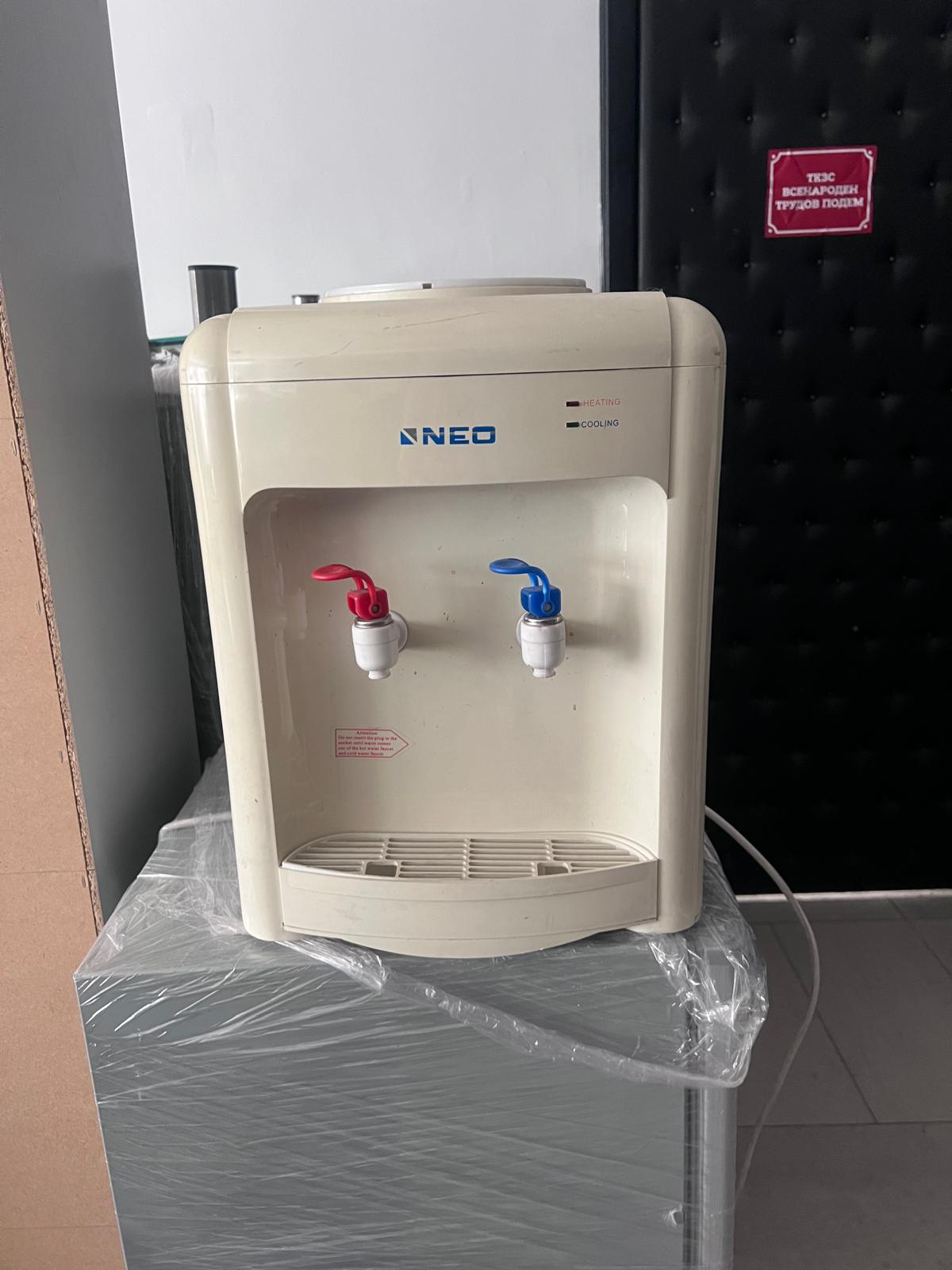 Уред за вода с два крана за топла и студена вода, подходящ за офис и работна среда. Удобно решение за бърз достъп до вода през целия ден. Подходящ за поставяне върху шкаф или плот.