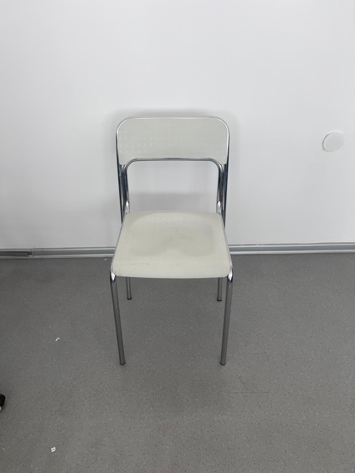 Семпъл и практичен стол с метална рамка и светла седалка. Подходящ за офис, кухня, зала или работно помещение.