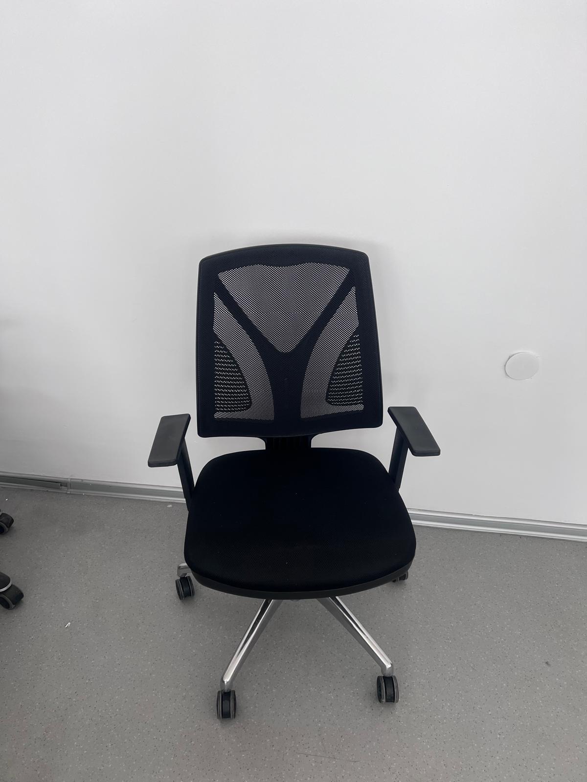 Практичен офис стол с мрежеста облегалка, мека седалка и стабилна основа с колелца. Подходящ за работно място, кабинет или домашен офис. Изчистен и универсален модел.