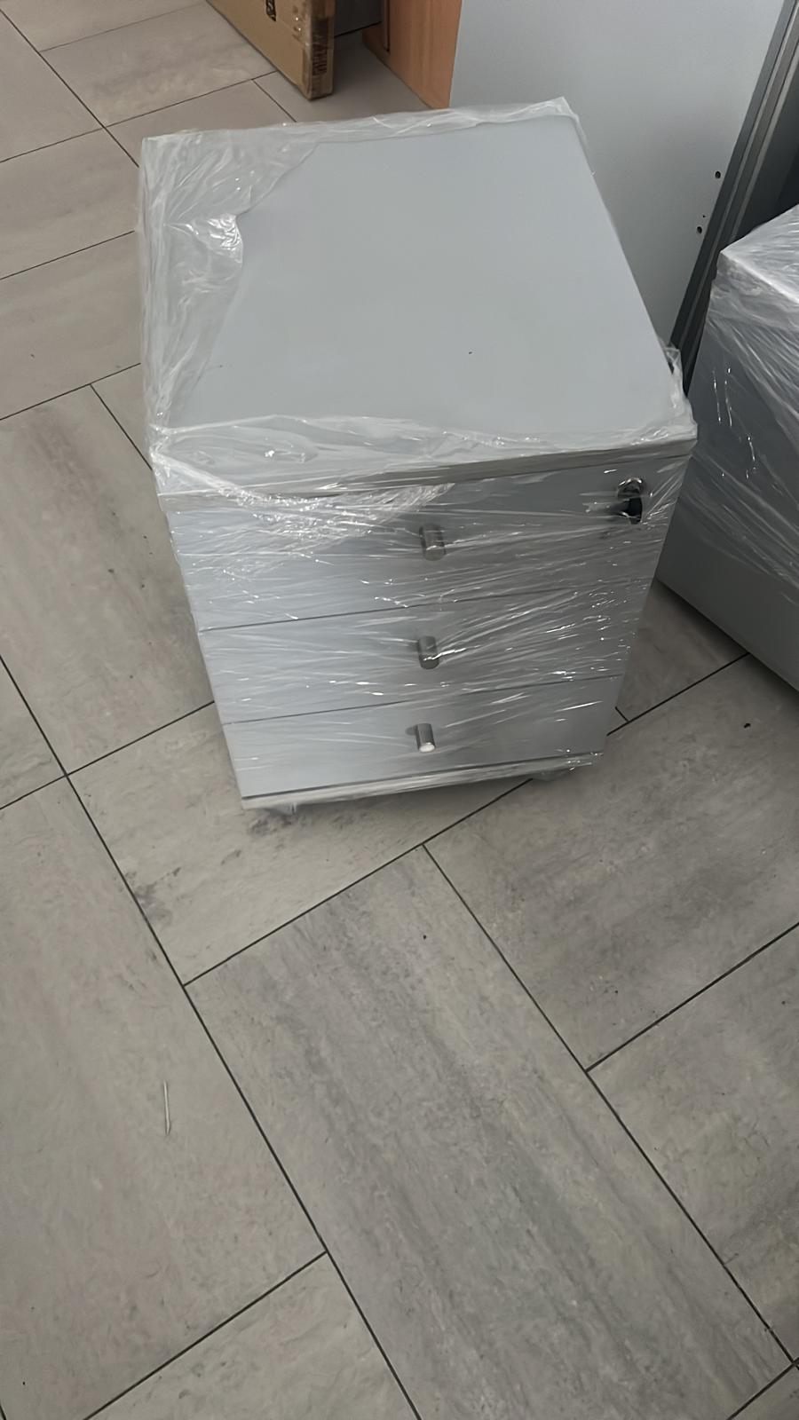 Практичен офис шкаф с 3 чекмеджета, подходящ за съхранение на документи, офис материали и лични вещи. Компактен и удобен за подреждане до бюро или в работно помещение.